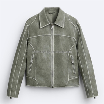 Col de chemise en molleton personnalisé moto délavé Doublure matelassée Veste en cuir suédé pour l'hiver