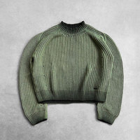 Unisex Stone Washed Knitted Jumper Custom Logo Cotton Pullover Anti-Wrinkle Vintage Crew Neck Sweatshirt Loose Fit Rib Knitwear