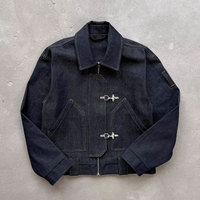 Custom Button Design Oversized Cropped Fit Pure Color Heavyweight 100% Cotton 14 Oz Plain Zip up Denim Jacket for Men