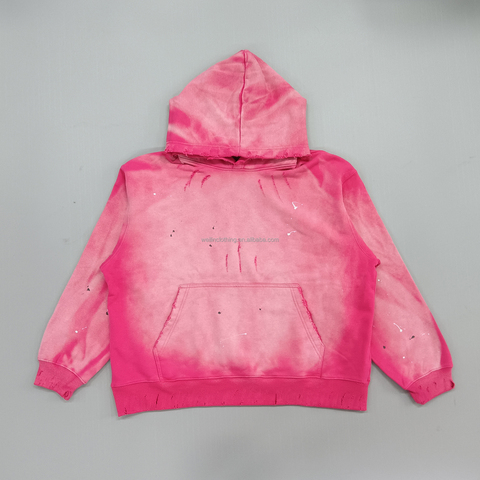 Custom Oversized Baggy Jersey Hoodie for Winter Fade Washed 100% Cotton Heavy Distressed Torn Ripped Design